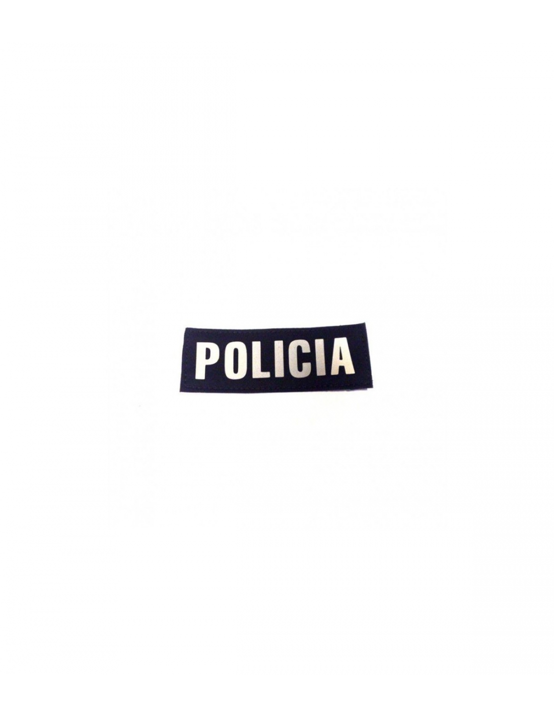 Es un parche de 13 x 4.5 cm fabricado en material textil adherible mediante velcro a fundas , chalecos ..etc .El parche en cuestión tiene fondo negro mate y letras blancas de alta durabilidad y resistencia buscando la maxima visibilidad e identificacion rapida del agente de policía.