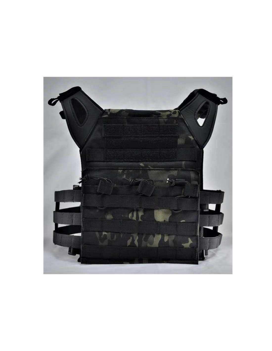 Material: nylon y cuero sintético Talla: ajustable Capacidad: 3 cargadores tipo M4 Ligero, cómodo y ergonómico Color: mcbk Incluye placas dummy