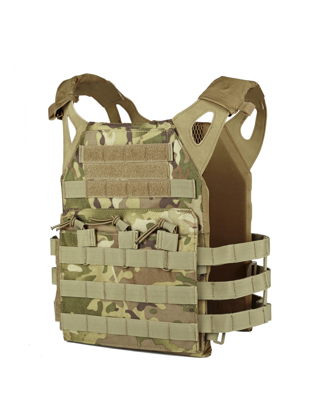 Material: nylon y cuero sintético Talla: ajustable Capacidad: 3 cargadores tipo M4 Ligero, cómodo y ergonómico Color: mcbk Incluye placas dummy