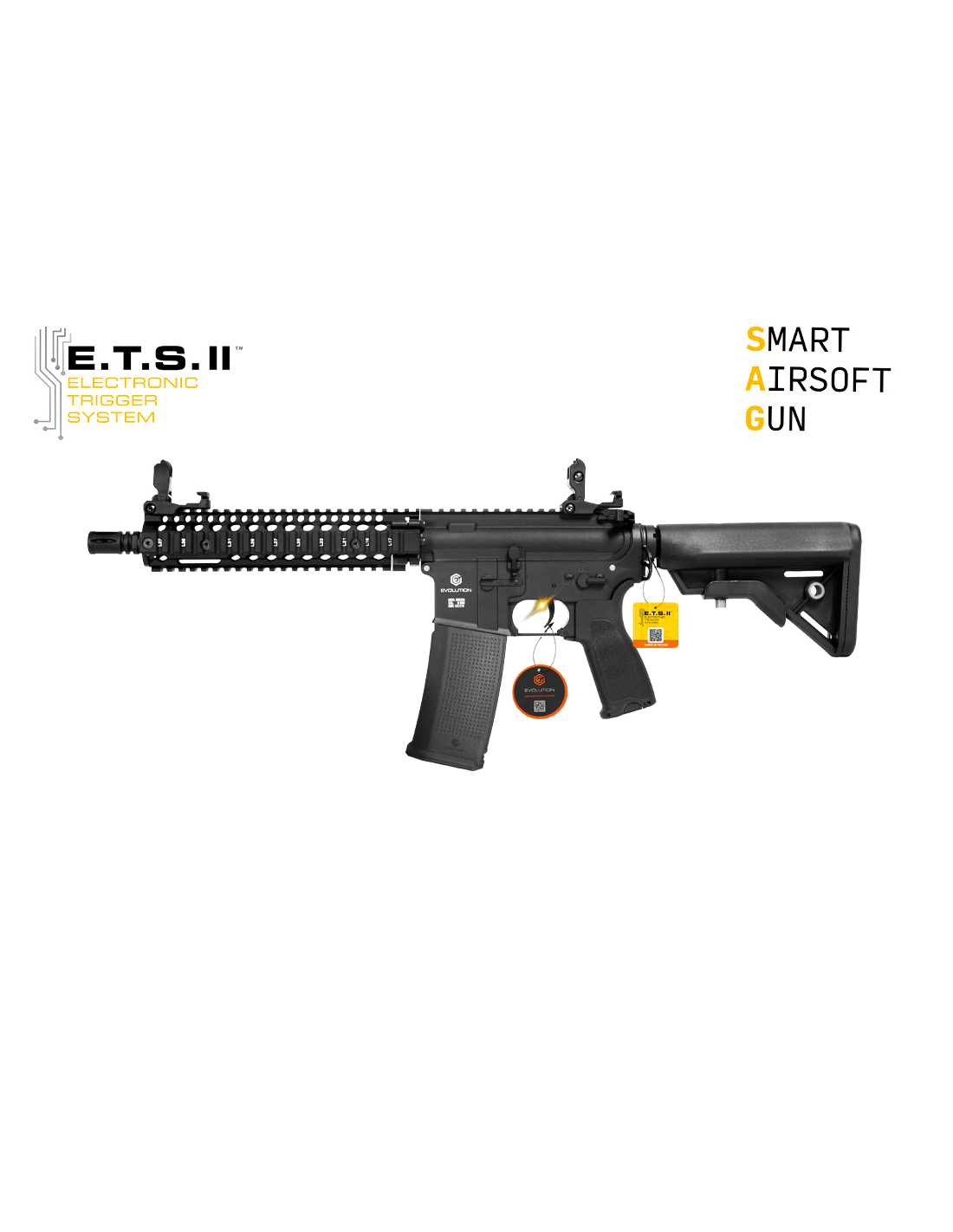 Descubre el Evolution Recon MK18 MOD 1 10.8" Carbontech ETS, un rifle de aire suave diseñado para rendimiento y durabilidad. Con medidas de 659-780 mm y un peso de 2,9 kg, este modelo cuenta con un cuerpo de tecnopolímero Carbontech y casquillos metálicos. Su cañón interno de 6.01 mm y cargador de 350 BBs garantizan precisión. Equipado con un cilindro de aluminio CNC, conector de batería T-plug Deans type y un gearbox reforzado con Mosfet y gatillo electrónico E.T.S., ofrece una experiencia de disparo excepcional. Mejora tu juego con el Evolution Recon MK18.